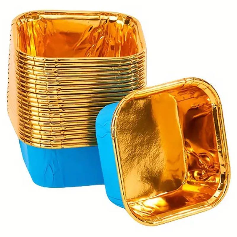 форма бум. Маффин 65х65 h=35мм голубая-золотая