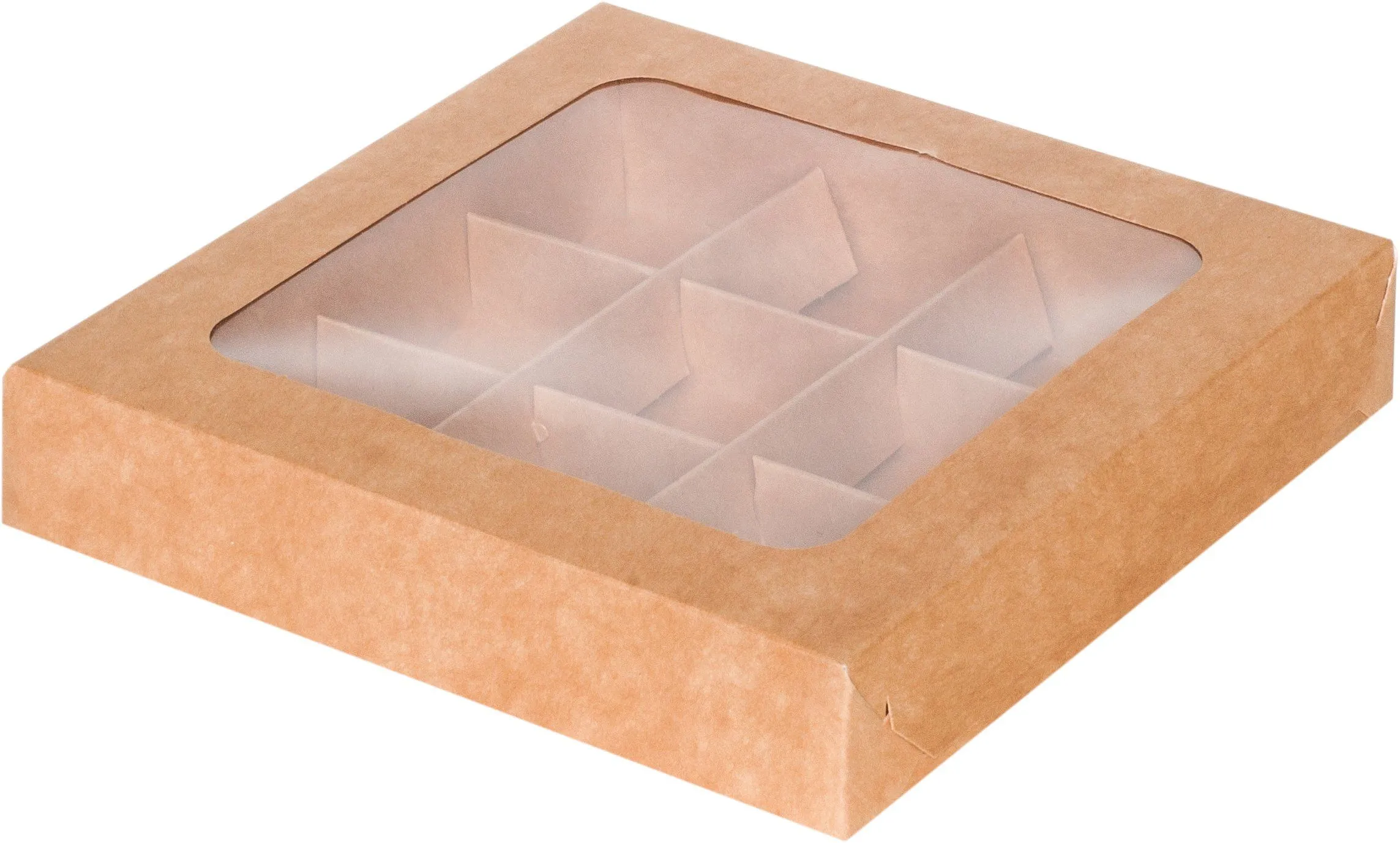 —коробка бум. 155х155х30 для 9 конфет крафт с окном