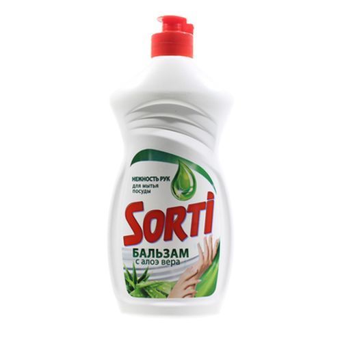 Моющее средство для посуды «Капля-Сорти Алоэ Вера» 450 мл — густой гель для ручного мытья посуды и кухонных поверхностей, не требует разбавления. Содержит натуральный экстракт алоэ вера для ухода за кожей рук, эффективно удаляет жир и загрязнения в холодной воде, оставляя блеск без разводов.