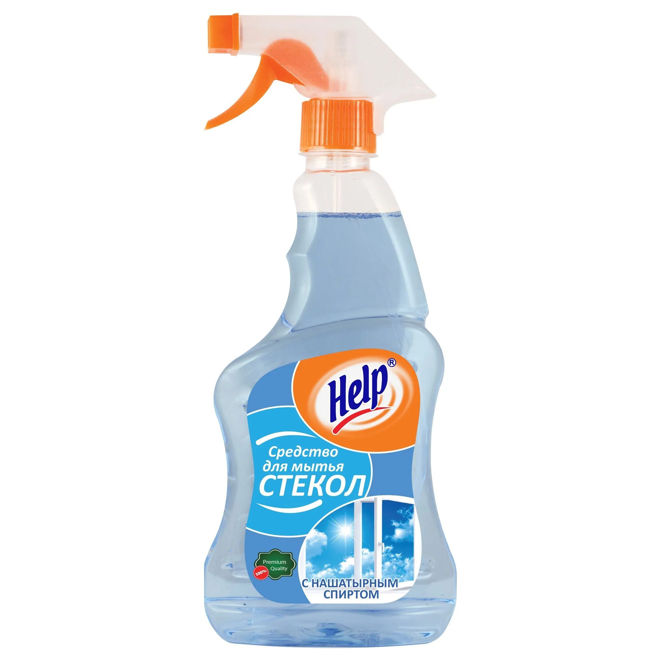 Средство для мытья стекол «Help с нашатырным спиртом» 750 мл — мощный спрей для окон, зеркал, автостёкол, экранов ТВ, стеклянной посуды, подоконников, кухонных поверхностей и мебели. Горючее, pH щелочной.