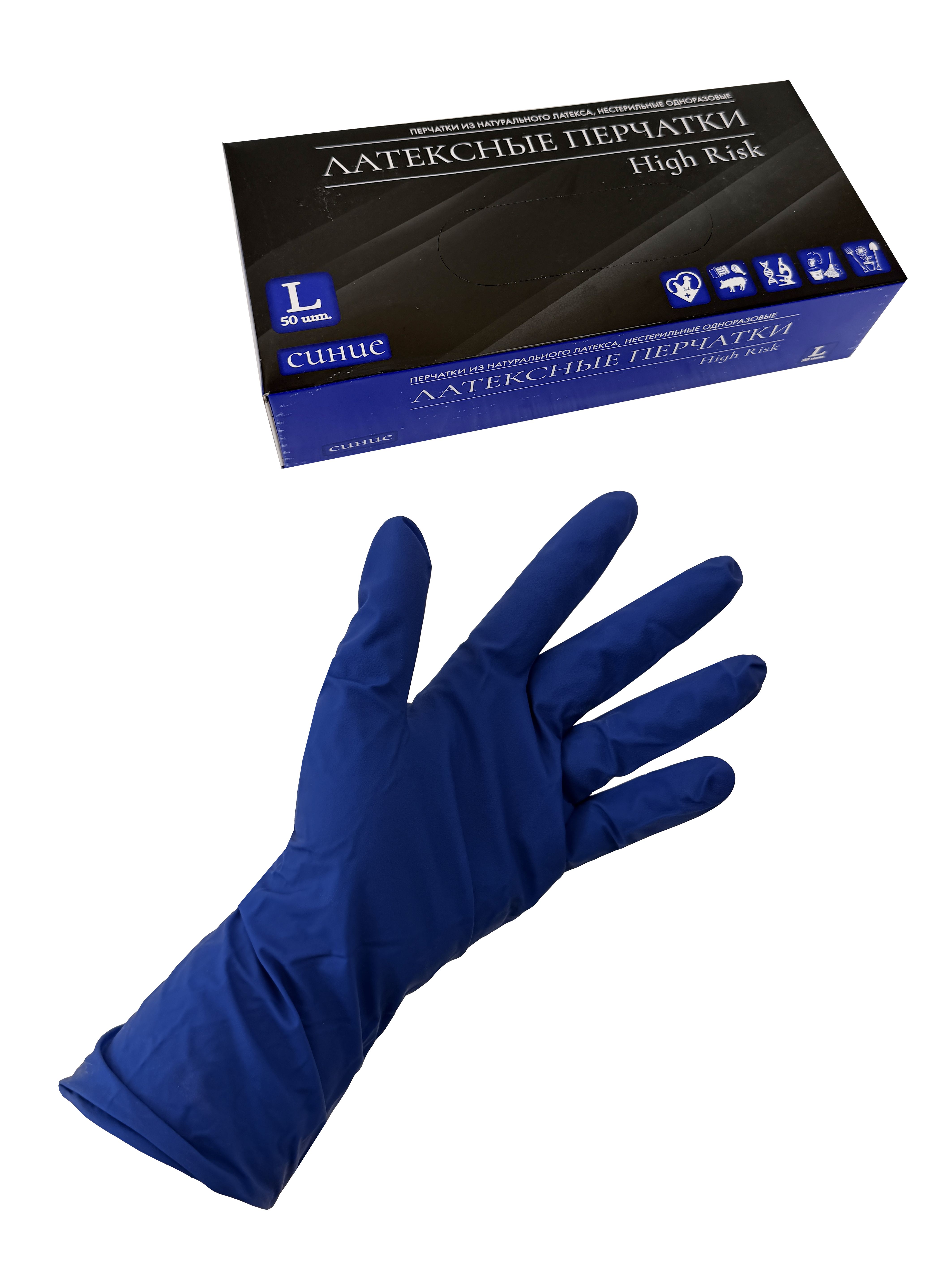 —перчатки латексные синие L High Risk/25 пар