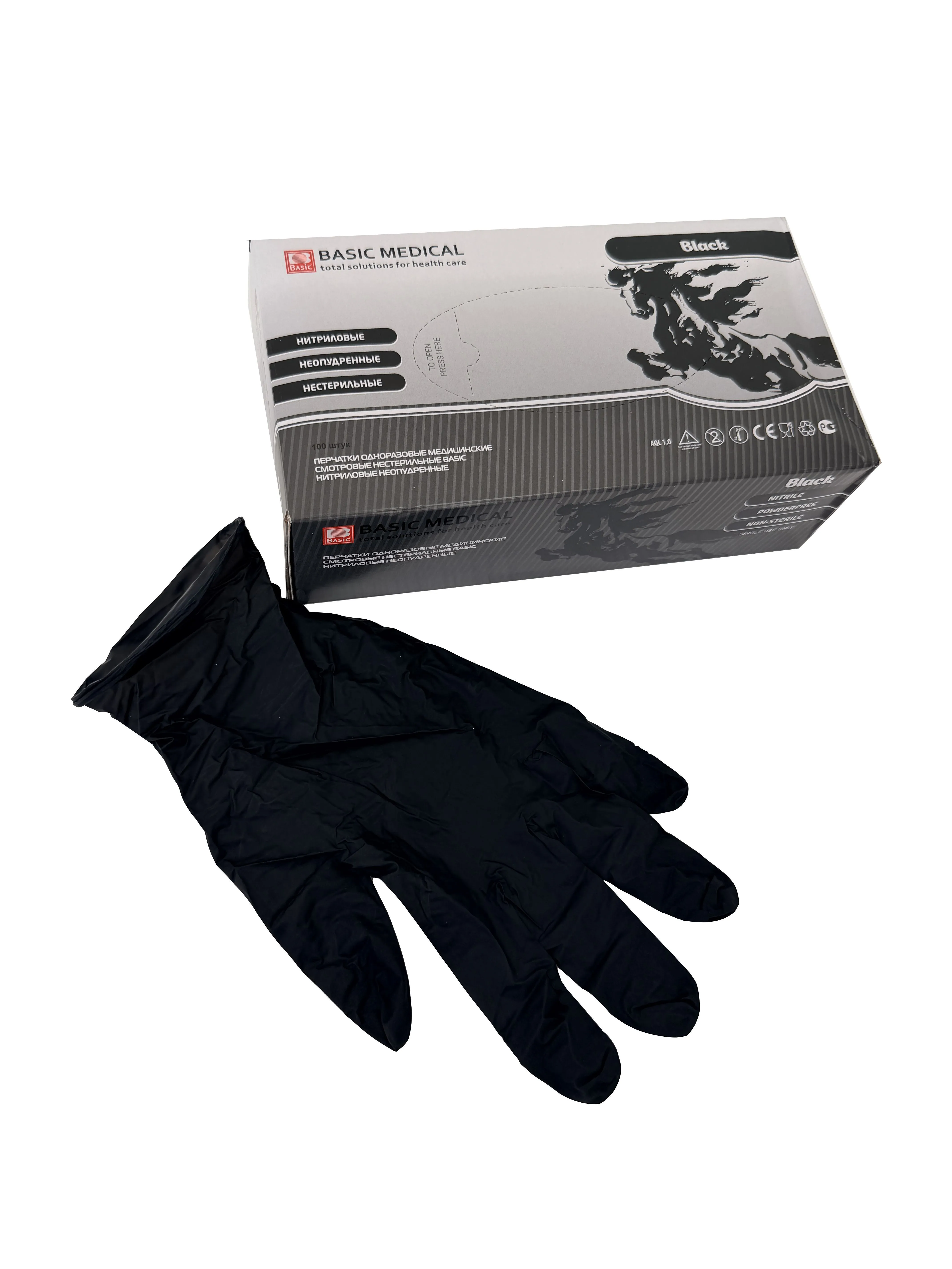 перчатки нитриловые ЧЕРНЫЕ M 50пар ЧЗ