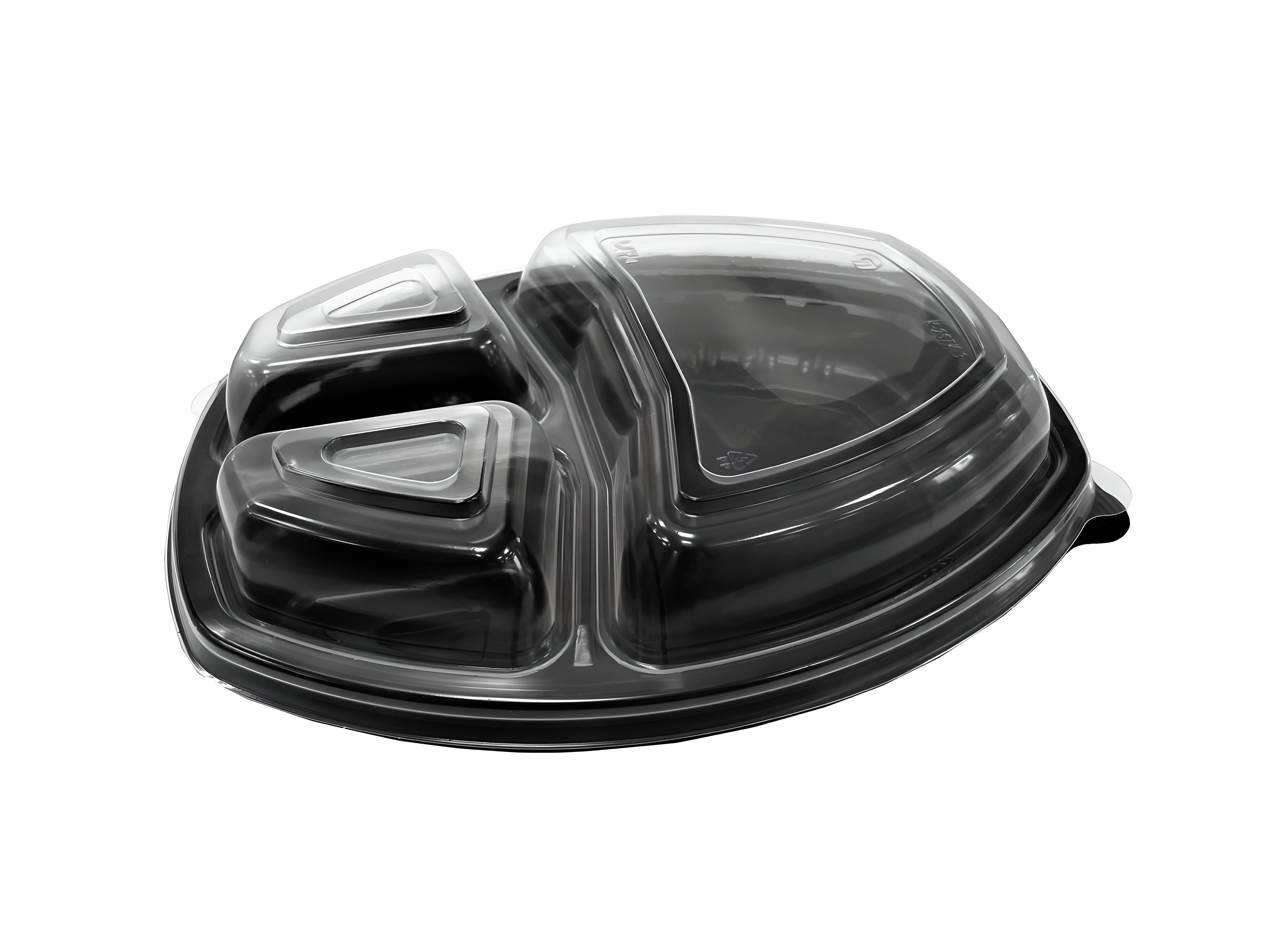 Одноразовый овальный 3-х секционный пластиковый контейнер ланч-бокс для горячего. Прекрасно выдерживает температуру горячих блюд, а также можно разогревать в микроволновой печи (СВЧ).