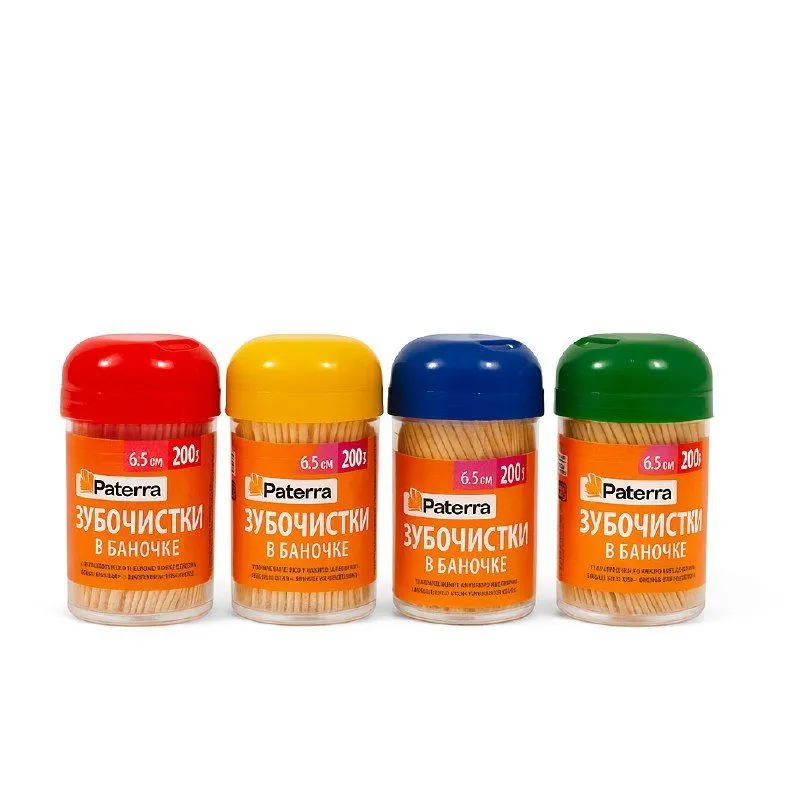 Деревянные зубочистки в пластиковой прозрачной банке. Предназначены для ухода за полостью рта после приема пищи. Подходят для дома и точек общественного питания.
