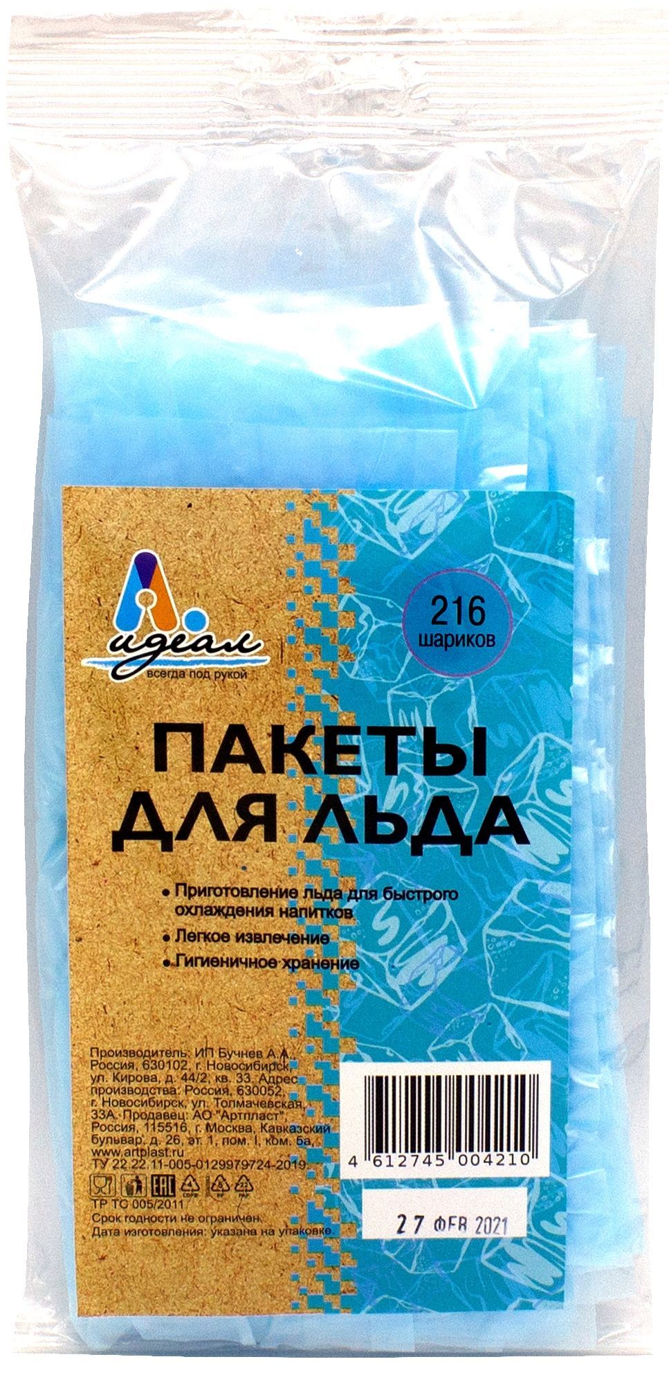 —пакетики д/льда Идеал (216 кубиков)*