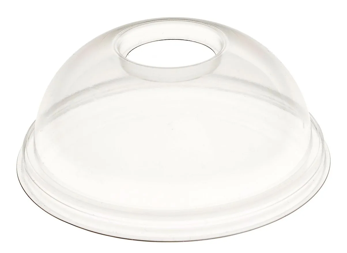 Пластиковая крышка PET прозрачной и выпуклой формы. Предназначена для стакана объемом 300 мл. Выпуклая форма крышки удобна для напитков и коктейлей содержащих пенку. Так же крышка имеет отверстие для соломинки. Диаметр 90,5 мм.