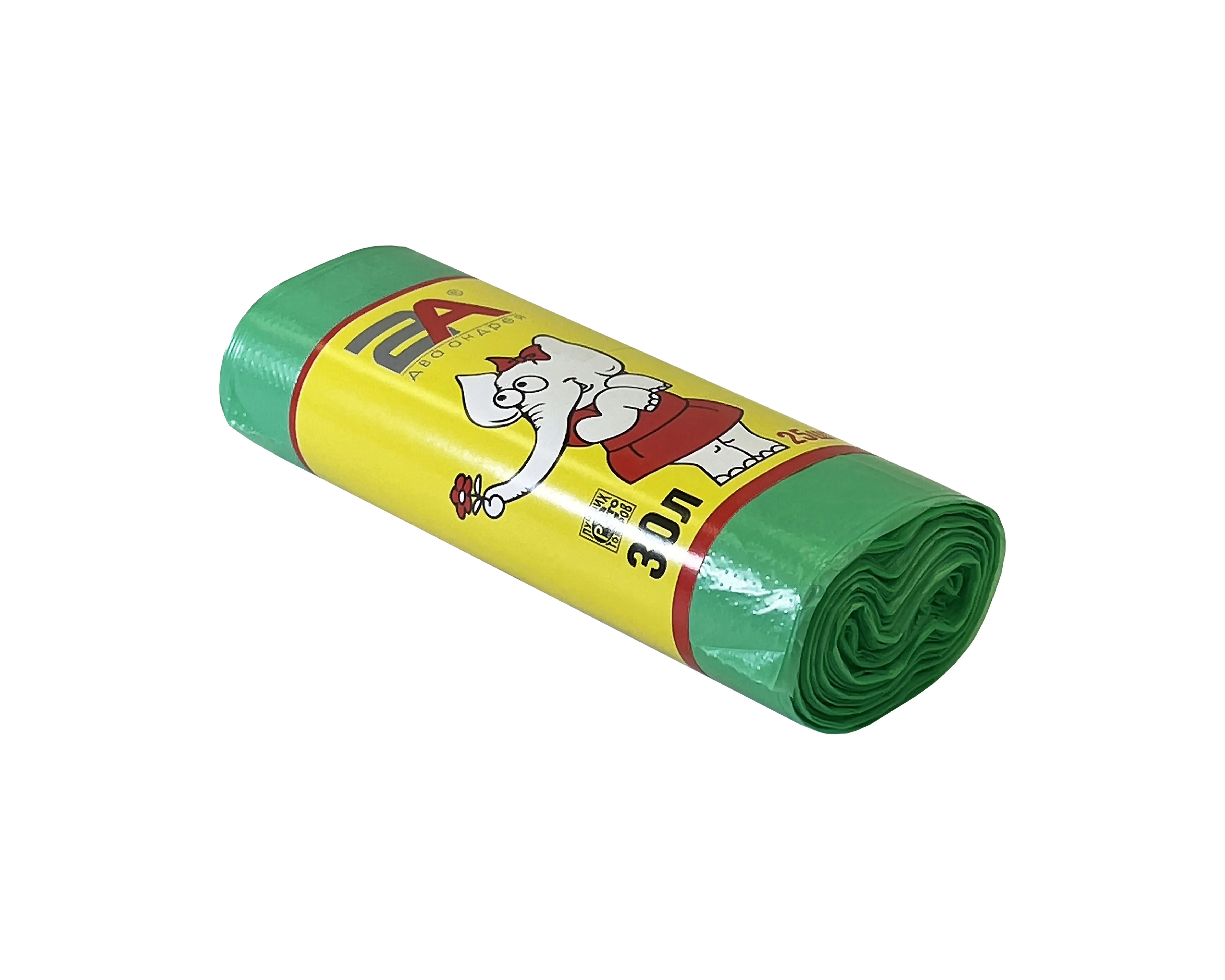 —пакеты д/мусора 30л 25шт "Слоны в рулоне" 2А зелен