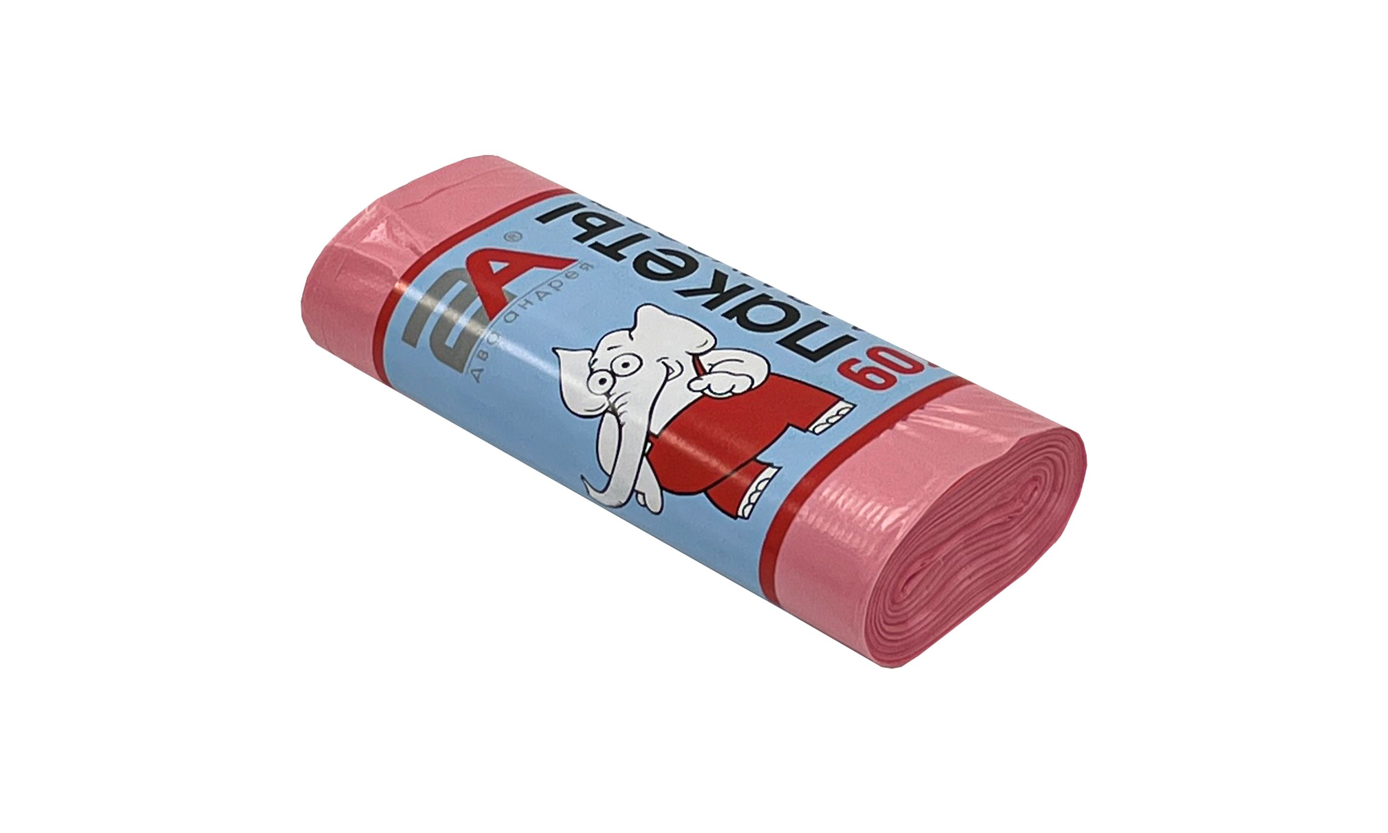 —пакеты д/мусора 60л 20шт "Слоны в рулоне" 2А розовые
