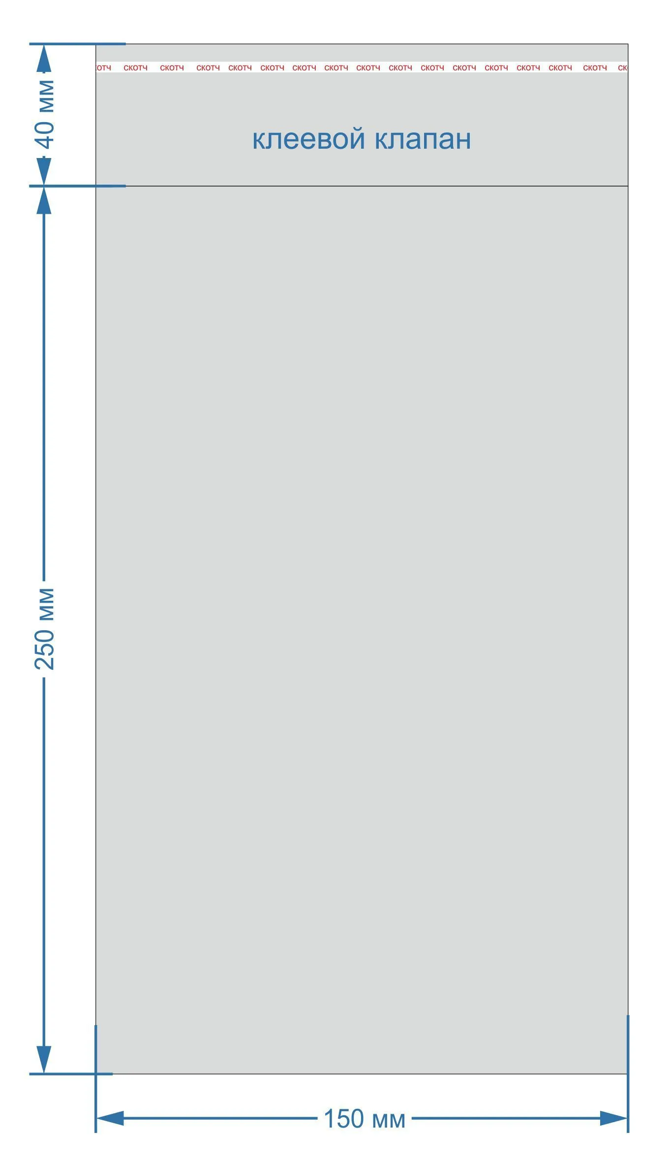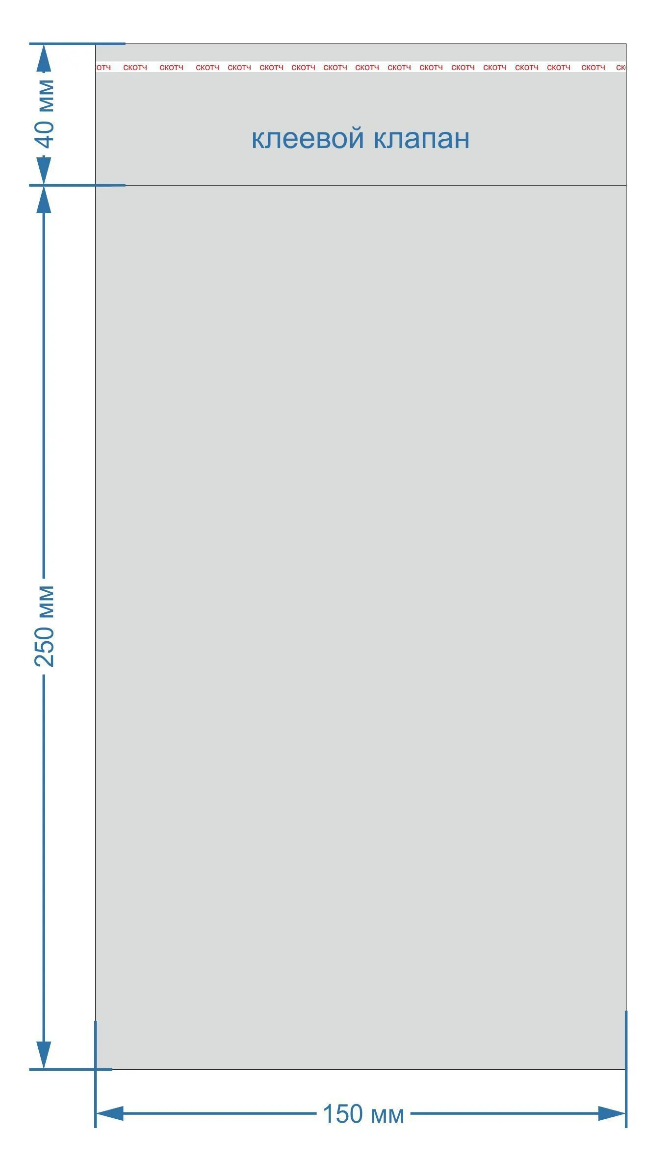 Размер пакета: 150х250 мм, с клеевым клапаном 40 мм. Толщина: 25 мкм. В упаковке 100 штук.