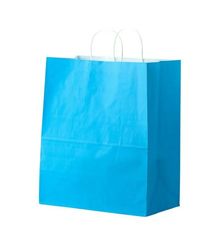 сумка бум. крафт 28х24х14 с круч. ручками Голубой *