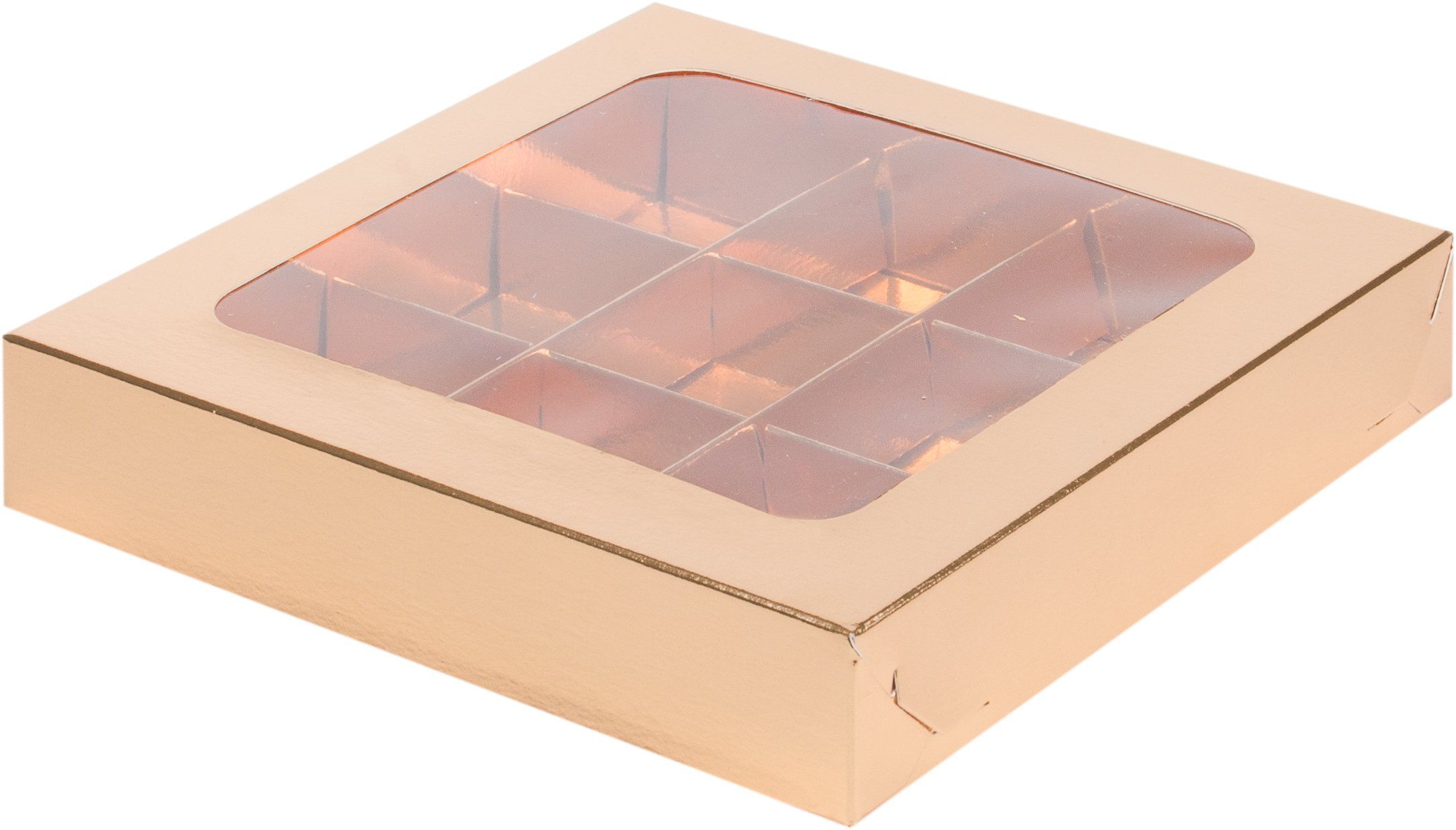 —коробка бум. 155х155х30 для 9 конфет золото матовая с окном