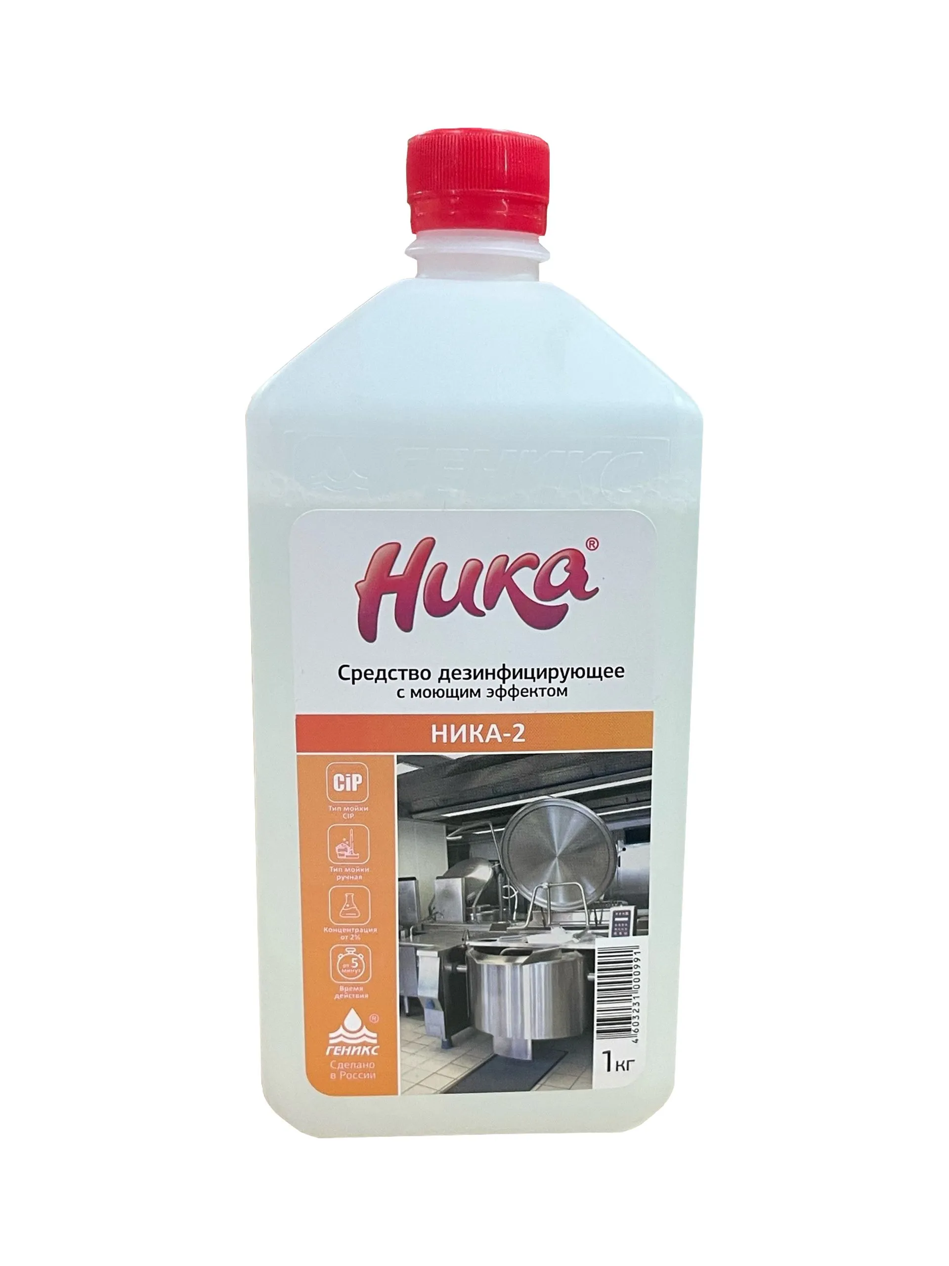 Дезинфицирующее средство «НИКА-2» 1 кг — щёлочное моющее дезсредство с катионным ПАВ для одновременной дезинфекции и мытья оборудования, тары, инвентаря и рабочих поверхностей на предприятиях пищевой промышленности.