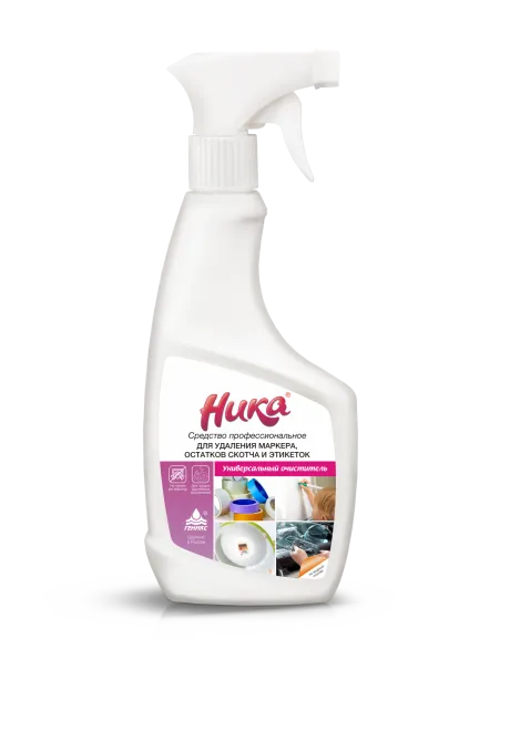 Моющее средство «Ника Универсал» 500 мл (с маркировкой "антивандал") —  концентрат для удаления надписей маркером, краской, клеем, наклеек, смол с поверхностей (стены, мебель, авто, металл, пластик).