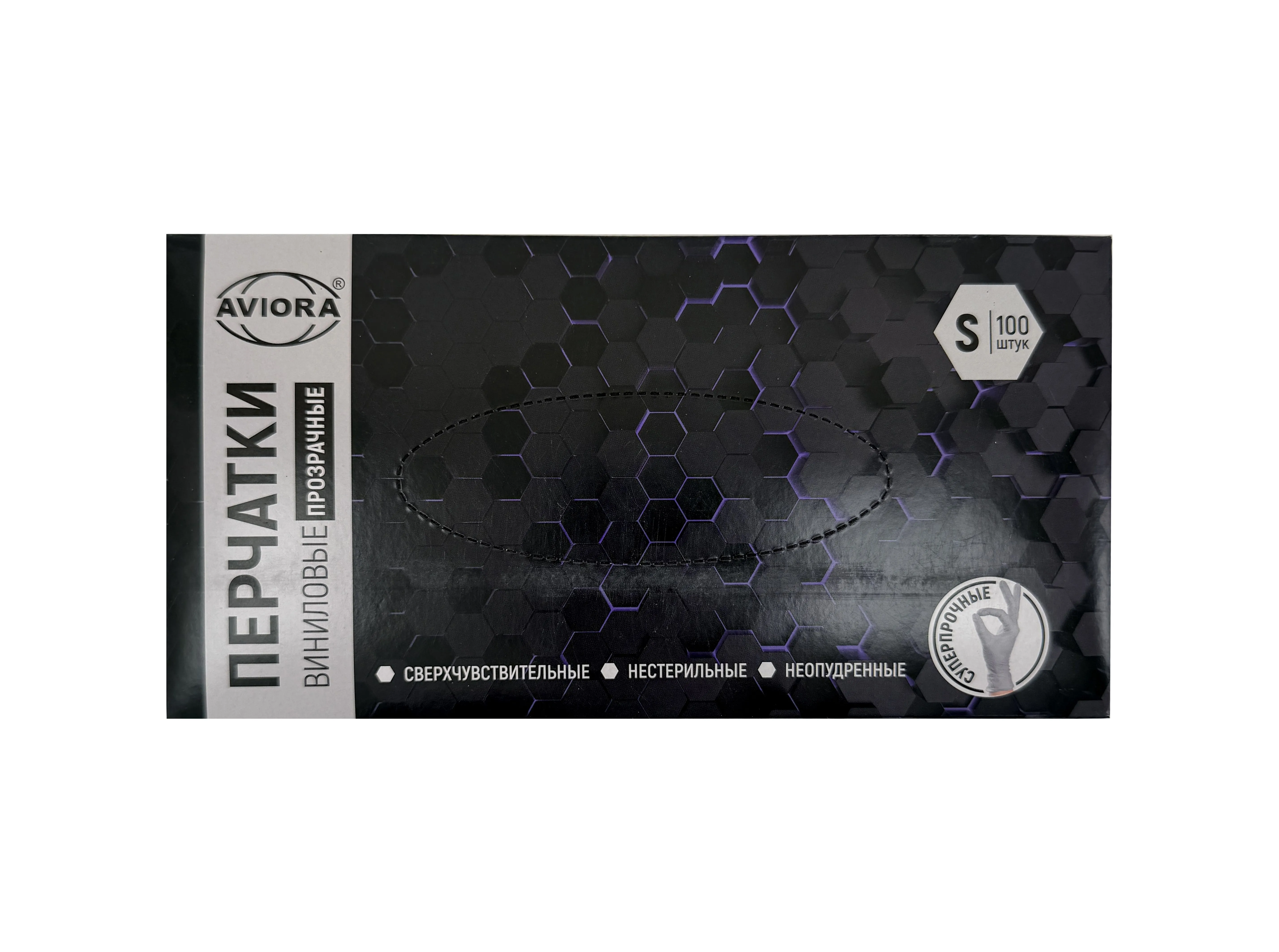Виниловые одноразовые перчатки прозрачного цвета. Перчатки одноразовые широко используются в медицине, в сфере красоты, в быту. Виниловые перчатки предпочтительны для использования колористами и в работе по хозяйству. Винил достаточно устойчив к активным химическим веществам, к слабым растворам кислот и к щелочам. Внутренняя поверхность перчаток - неопудренная, что снижает риск возникновения дерматита. Наличие валика, скрученного вовнутрь, препятствует скатыванию перчатки. Виниловые перчатки легко как одеваются, так и снимаются. Экран большинства смартфонов чувствителен к виниловым перчаткам, не требуется снятие перчатки для ответа на звонок или включение фотокамеры. Допускается контактировать с пищевыми продуктами. Виниловые перчатки гипоаллергенны.