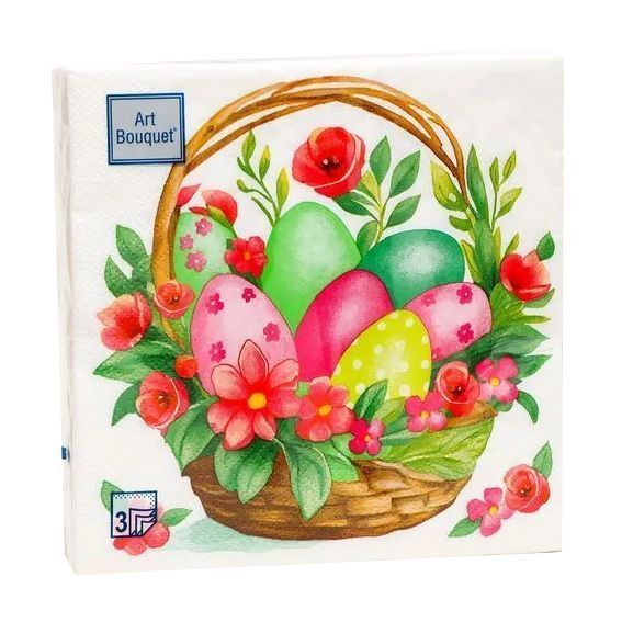 салфетки 3-сл 33х33 БУКЕТ пасхальная корзина с цветами /20