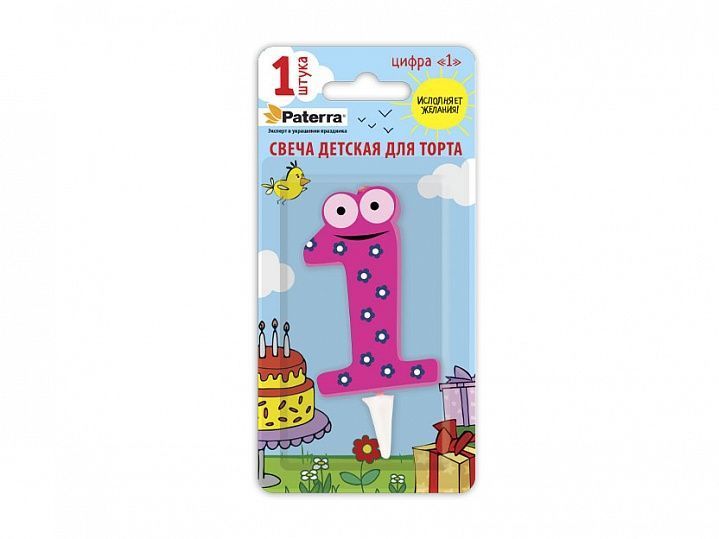 свечи д/торта  Цифры детские "1"  PATERRA
