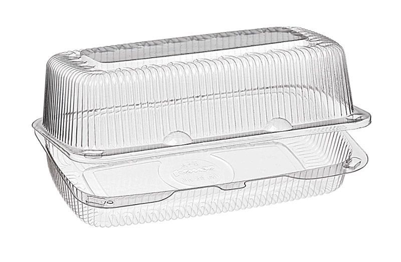 Контейнер-ракушка РК-38 (М) (ОП) (ПЭТ) предназначен для фасовки различных кондитерских изделий, в том числе для пирожных, нарезных пирогов и полуфабрикатов.