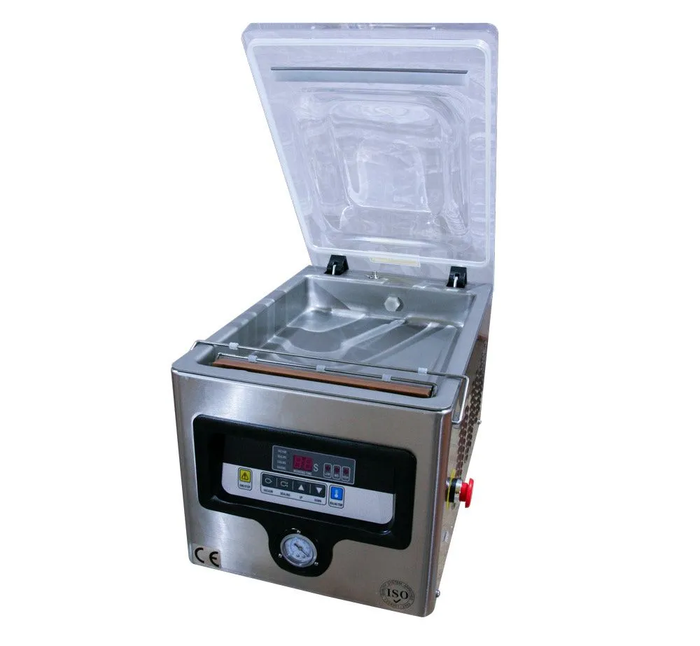 -Электронная панель управления имеет простой, интуитивно понятный интерфейс. -Прозрачная прочная крышки позволяет контролировать процесс упаковки.