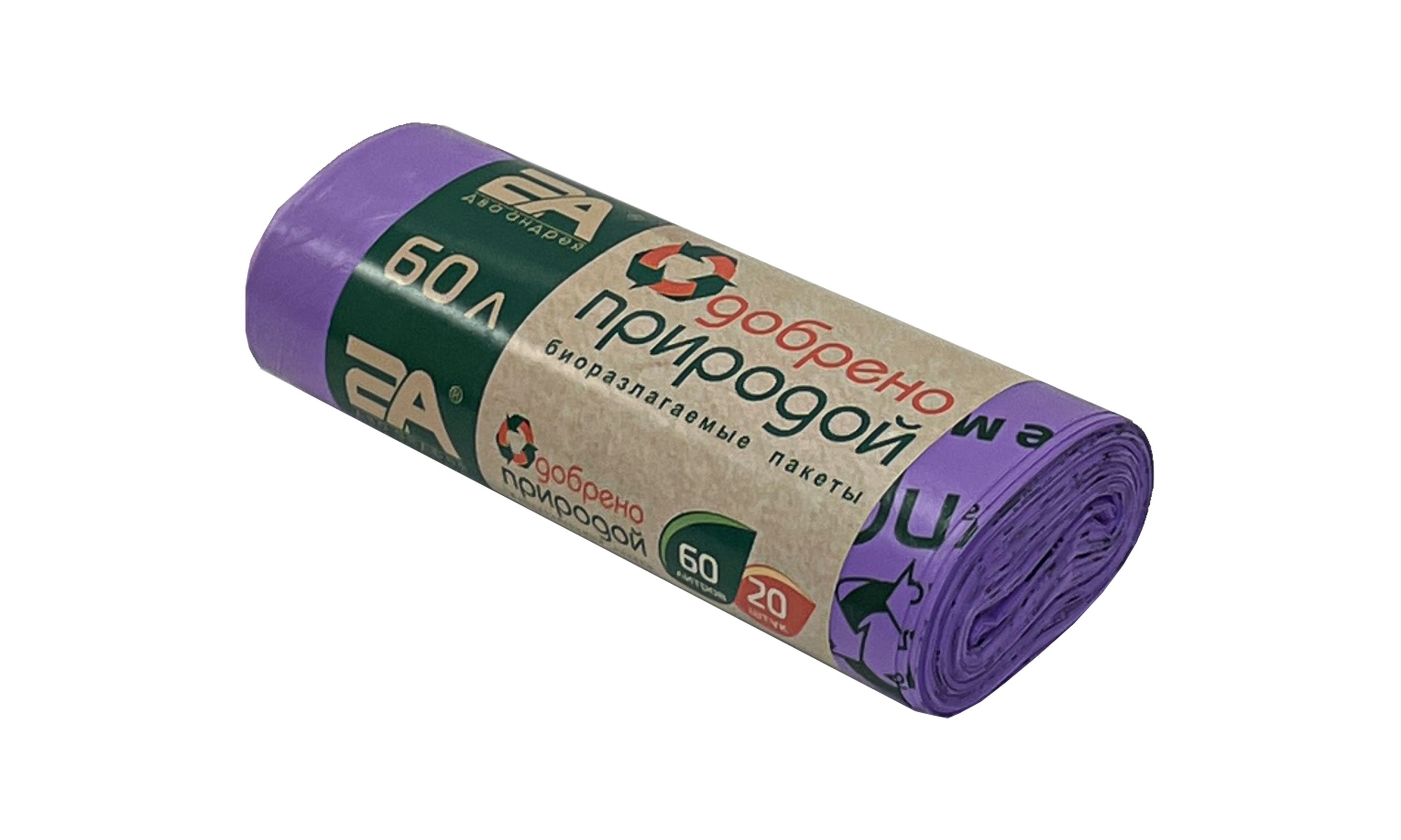 пакеты д/мусора 60л 20шт "Одобрено природой" фиолет.