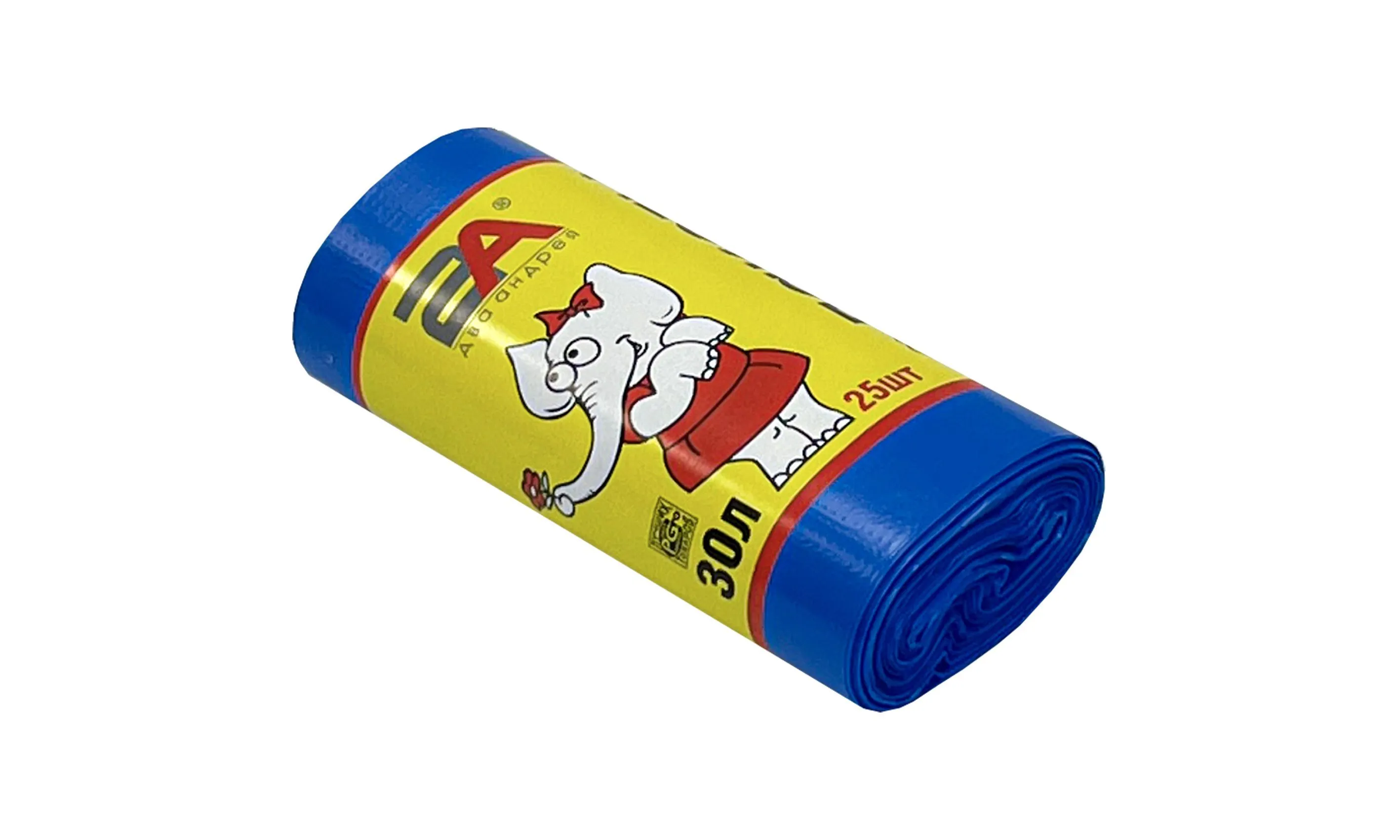 пакеты д/мусора 30л 25шт "Слоны в рулоне" 2А синие