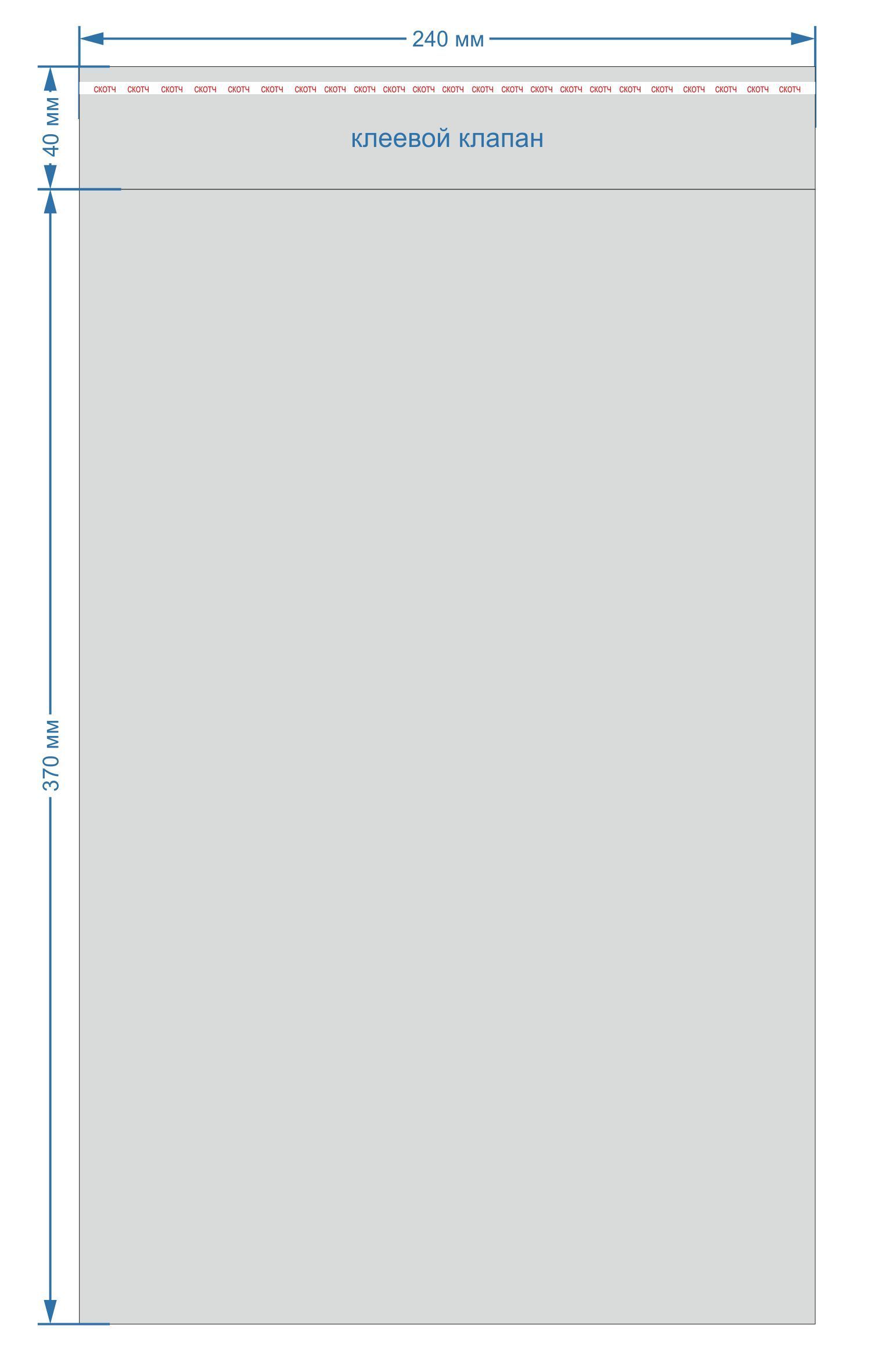 Размер пакета: 240х370 мм, с клеевым клапаном 40 мм. Толщина: 25 мкм. В упаковке 100 штук.