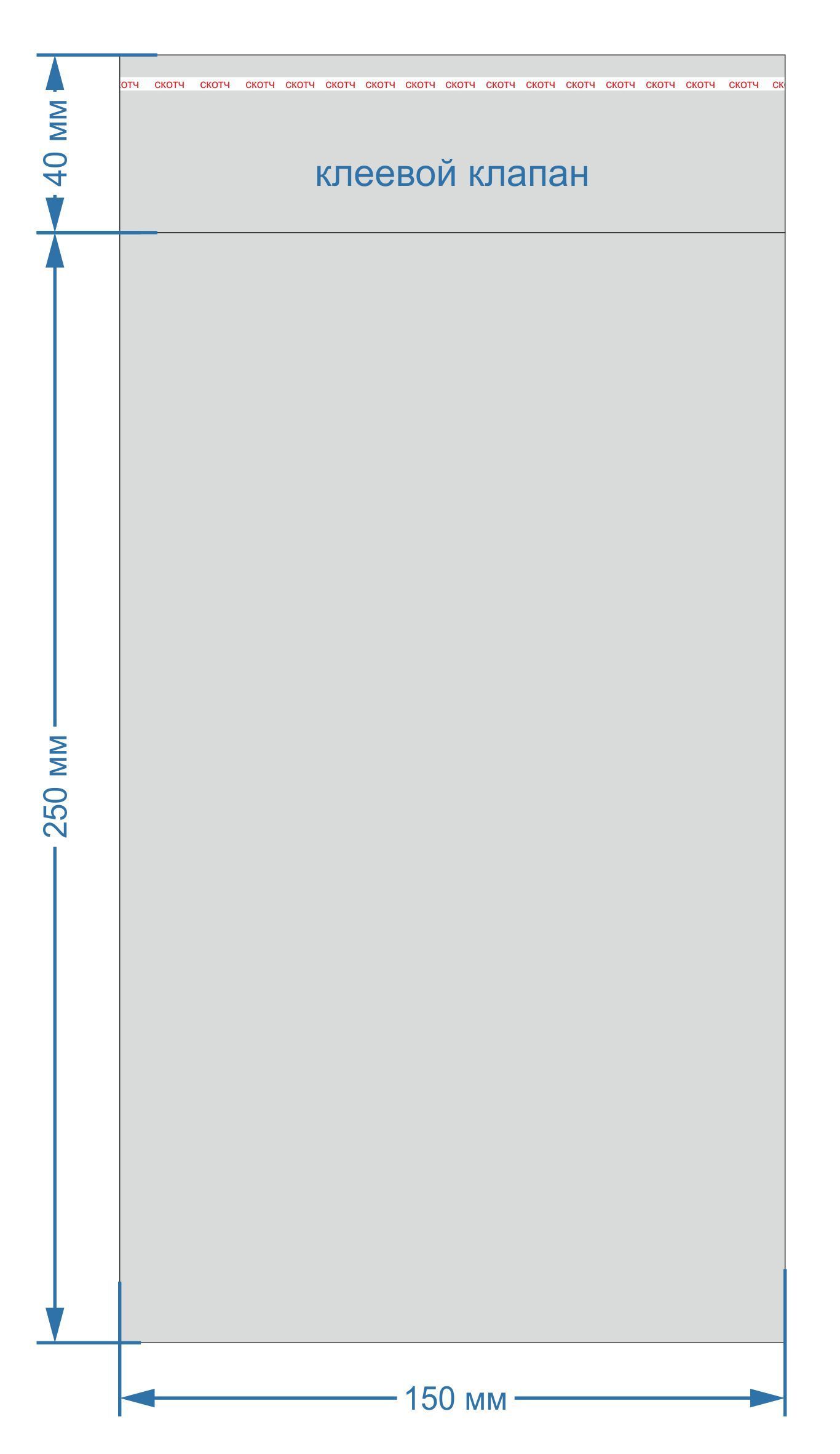 Размер пакета: 150х250 мм, с клеевым клапаном 40 мм. Толщина: 25 мкм. В упаковке 100 штук.