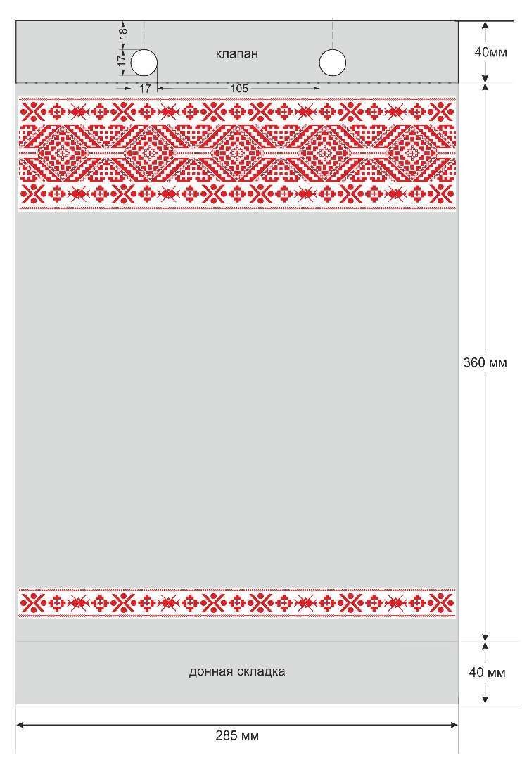 Размер пакета: 285х360+40 мм (ширина х длина + донная складка).
