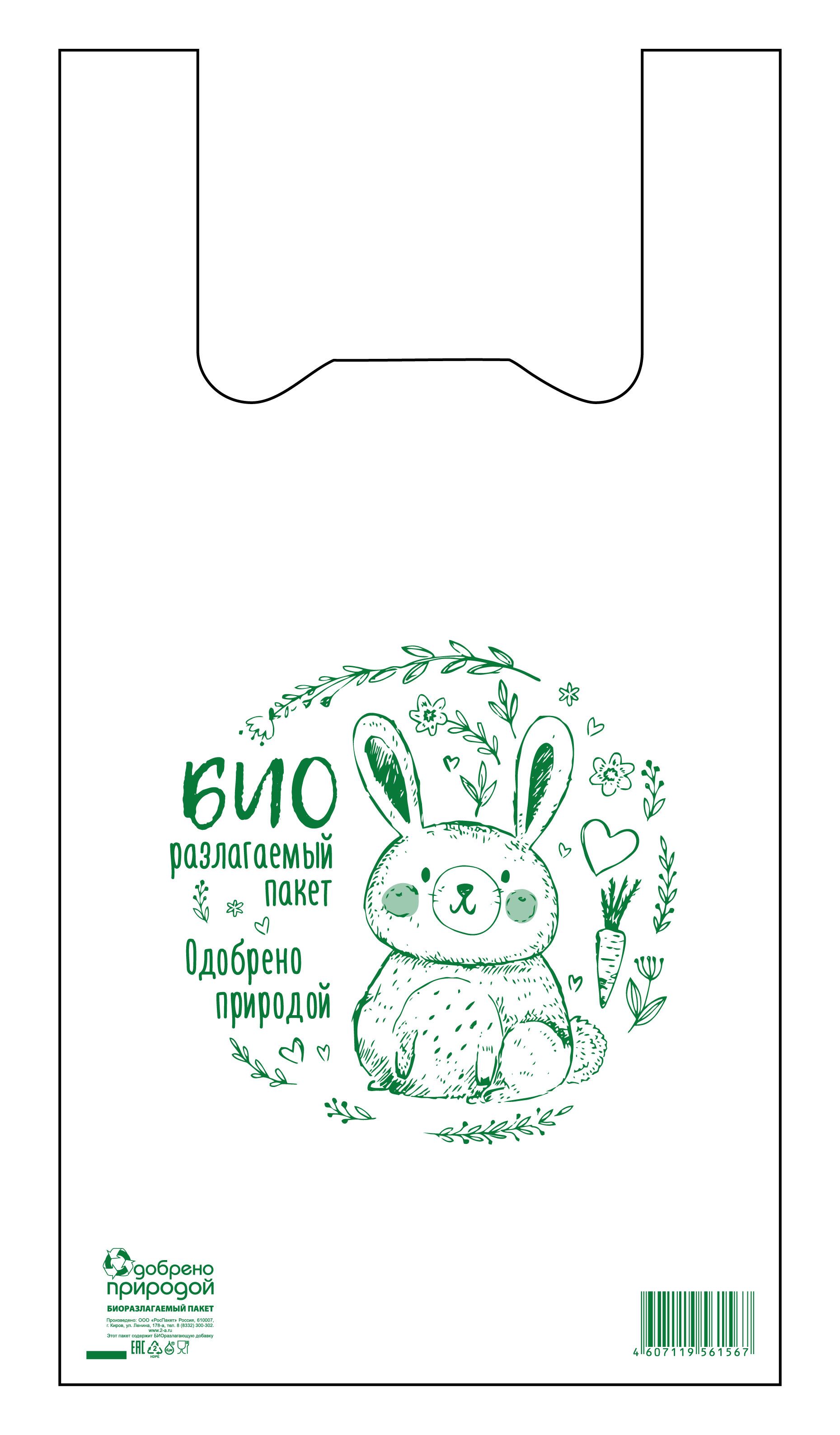 Пакеты-майки размером 27×50 см «Заяц БИО» — экологичное решение для упаковки товаров в розничной торговле, на кассе и в повседневном использовании.