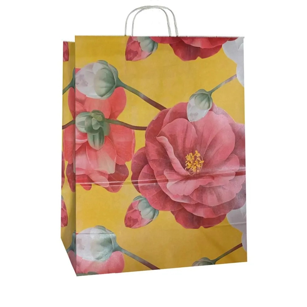 сумка бум. крафт 35х26х15 с круч. ручками Цветы *