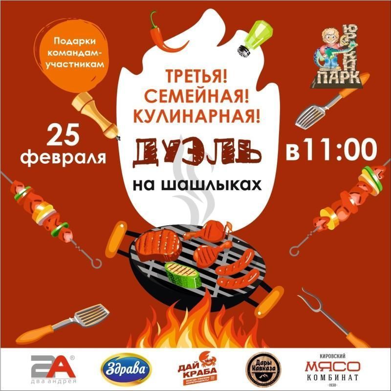 Пятничную рубрику открываем на этот раз очень волнующей для нас новостью: мы выступаем партнерами мероприятия, которое пройдет в ЮРКИН ПАРК | Парк отдыха и развлечений. 25 февраля в 11:00 можно будет посоревноваться в Дуэли на шашлыках! Регистрация уже открыта!